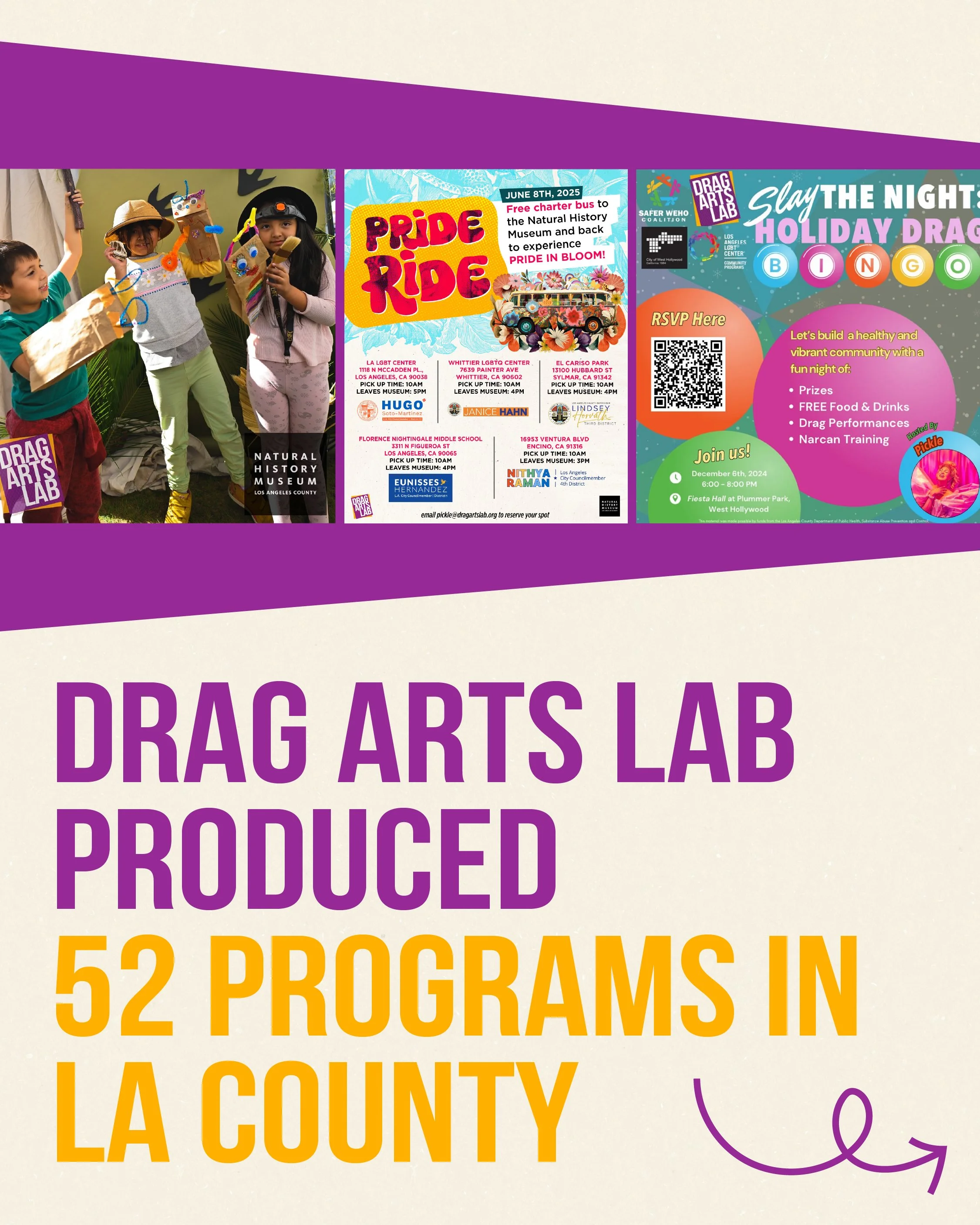 Drag Arts Lab expands and elevates the art of drag in Los Angeles County. We believe drag inspires and transforms communities.